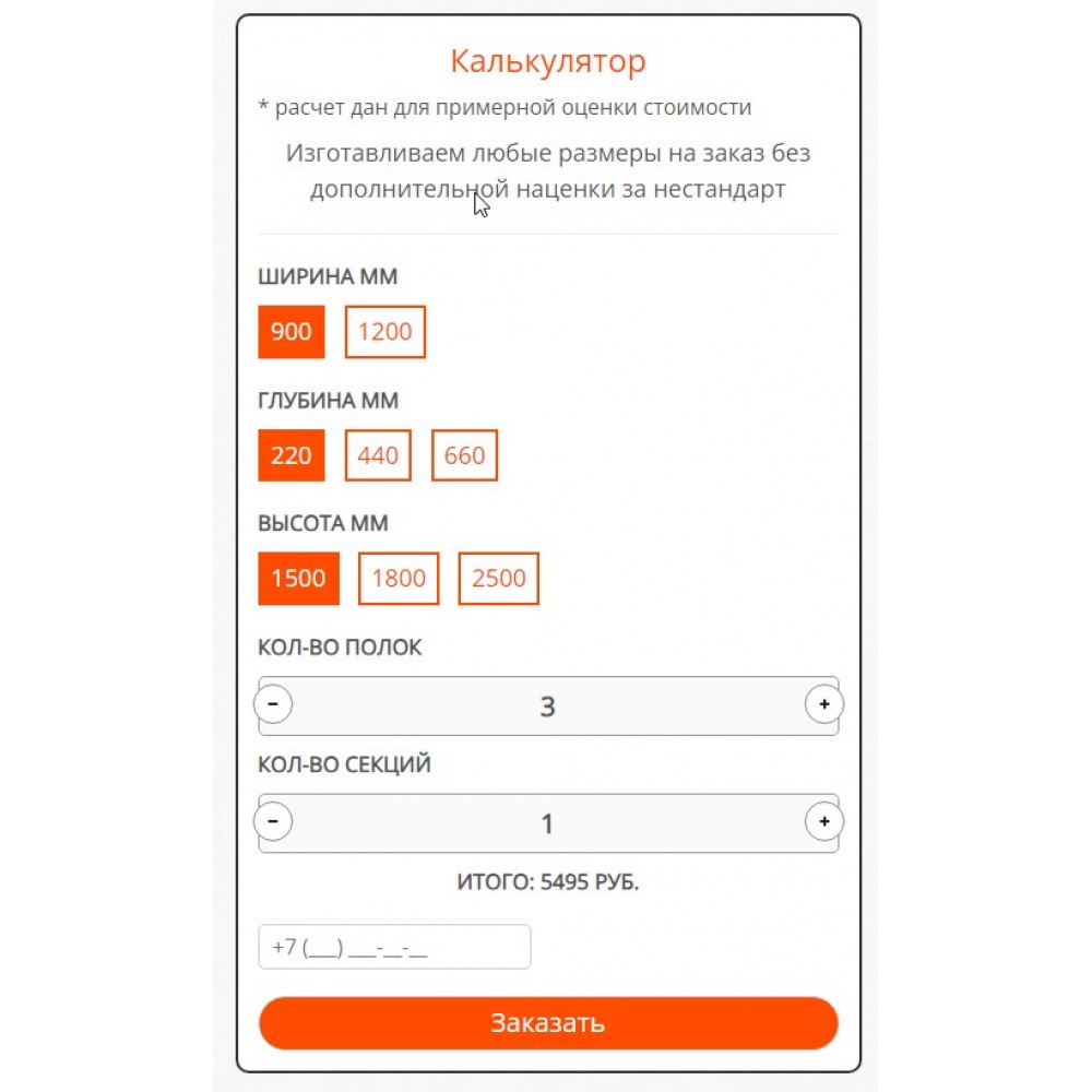 Модуль "Калькулятор стеллажей" от веб-студии Максвебсайт г. Ирбит