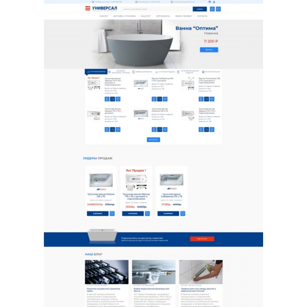 Интернет-магазин чугунных ванн и сантехники Универсал от веб-студии Максвебсайт г. Ирбит