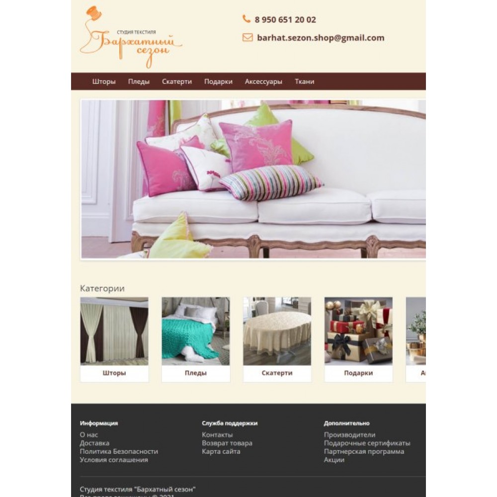 Интернет-магазин студии текстиля "Бархатный сезон" от веб-студии Максвебсайт г. Ирбит