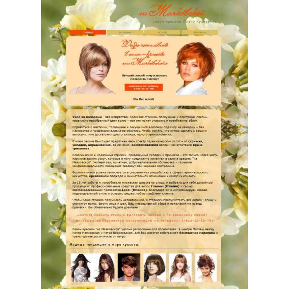 Сайт-визитка Салона красоты Ольги Кухаренко г.Москва от веб-студии Максвебсайт г. Ирбит