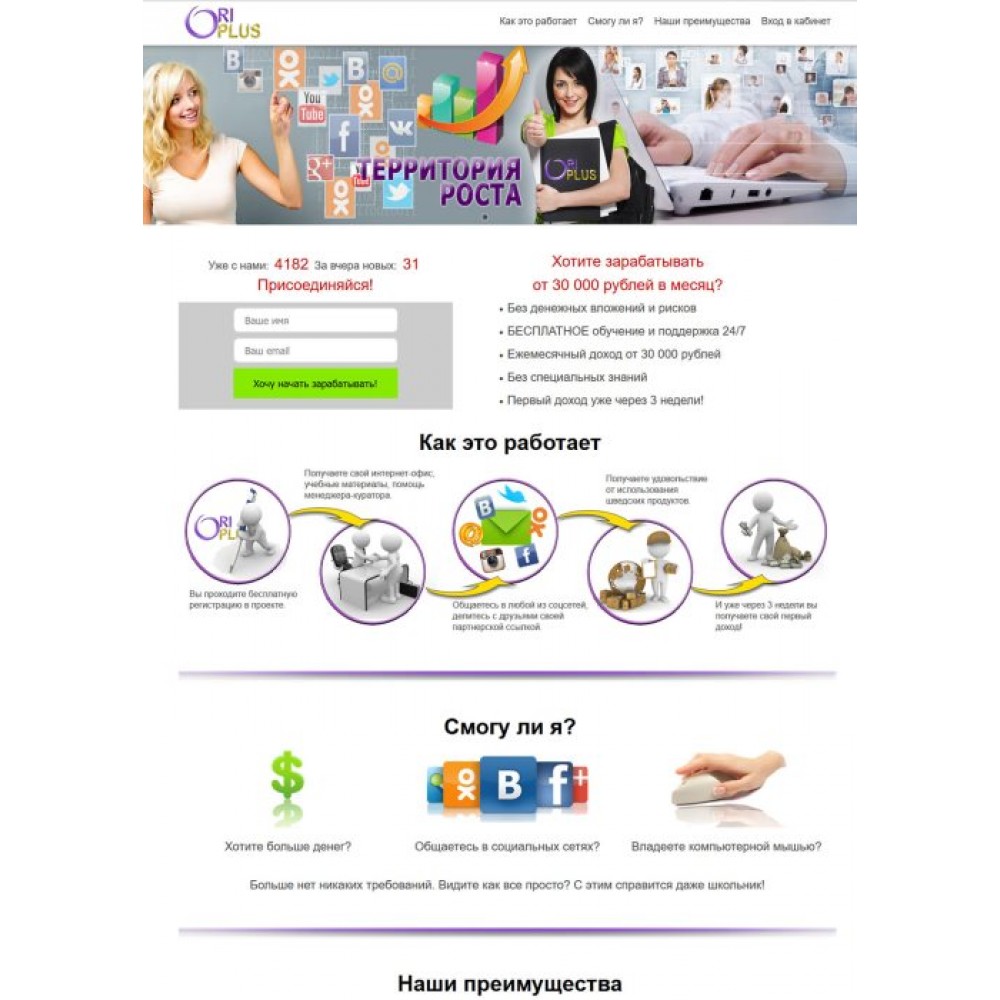 • Лендинг с обучающим кабинетом для менеджеров Орифлейм